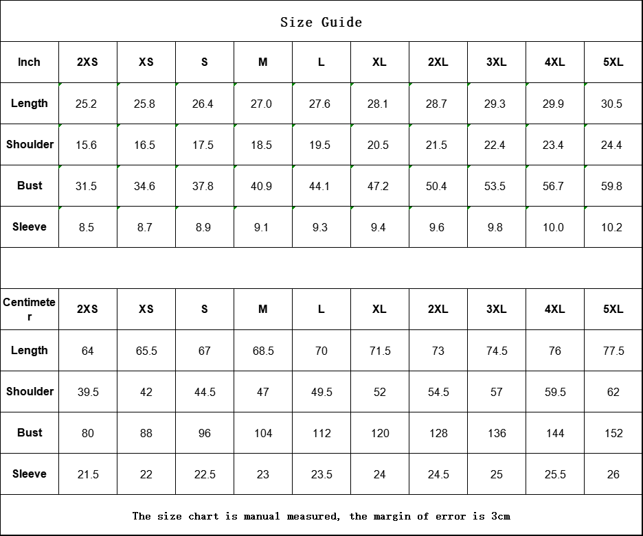 Centimeter | 2XS | XS | S | M | L | XL | 2XL | 3XL | 4XL | 5XL |