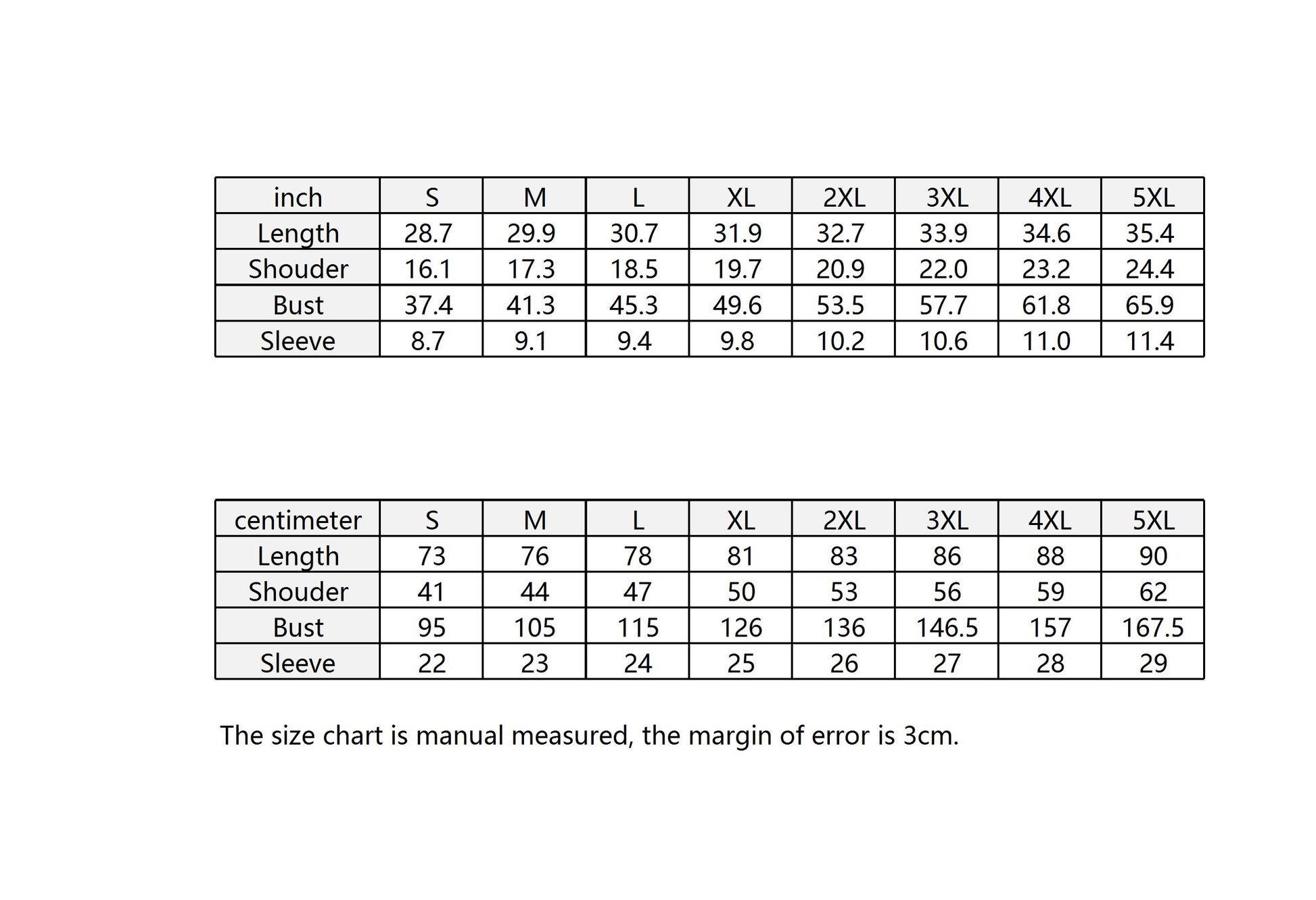 inch | S | M | L | XL | 2XL | 3XL | 4XL | 5XL |