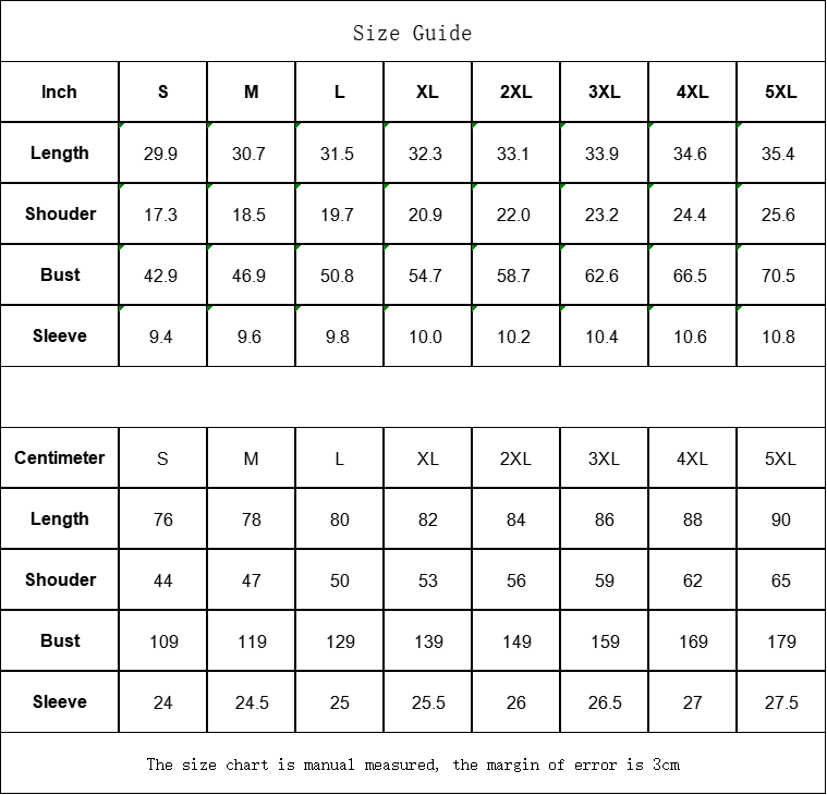 Centimeter | S | M | L | XL | 2XL | 3XL | 4XL | 5XL |