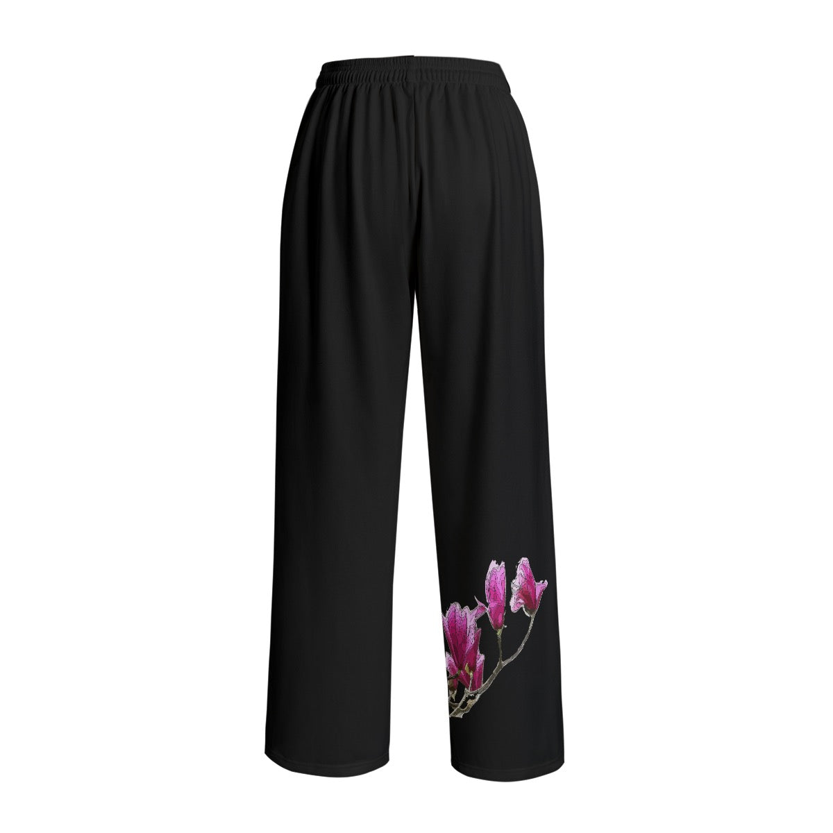 Wide leg trousers with natural droop; Skin friendly fabric, soft and comfortable; The elastic belt at the waist can be adjusted freely.