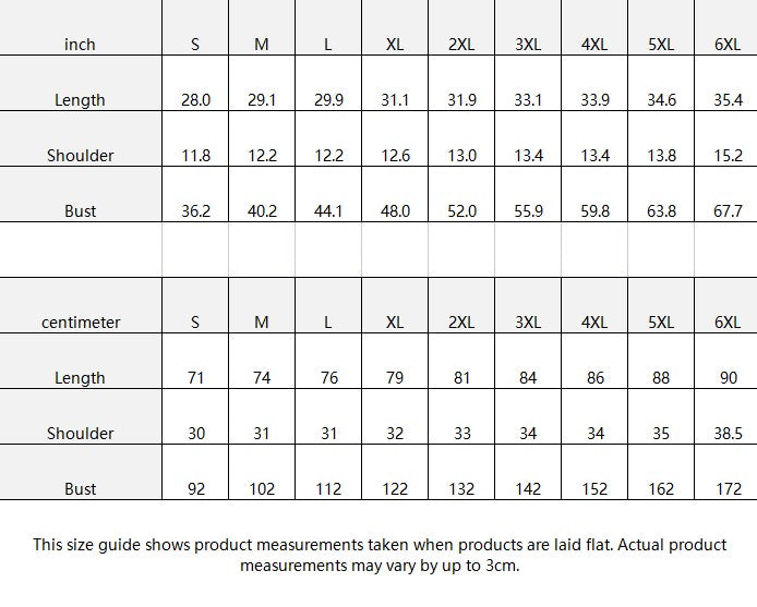 centimeter | S | M | L | XL | 2XL | 3XL | 4XL | 5XL | 6XL |