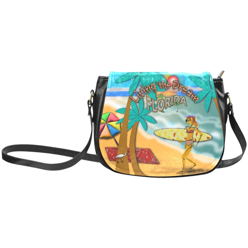 17.95 Oz. Made of PU Leathe.Single zippered top inside closure, flap front closure with magnetic snap closure.Inner zipper pocket on back wall and a back zipper pocket.Leather cross body shoulder strap with adjustable length.